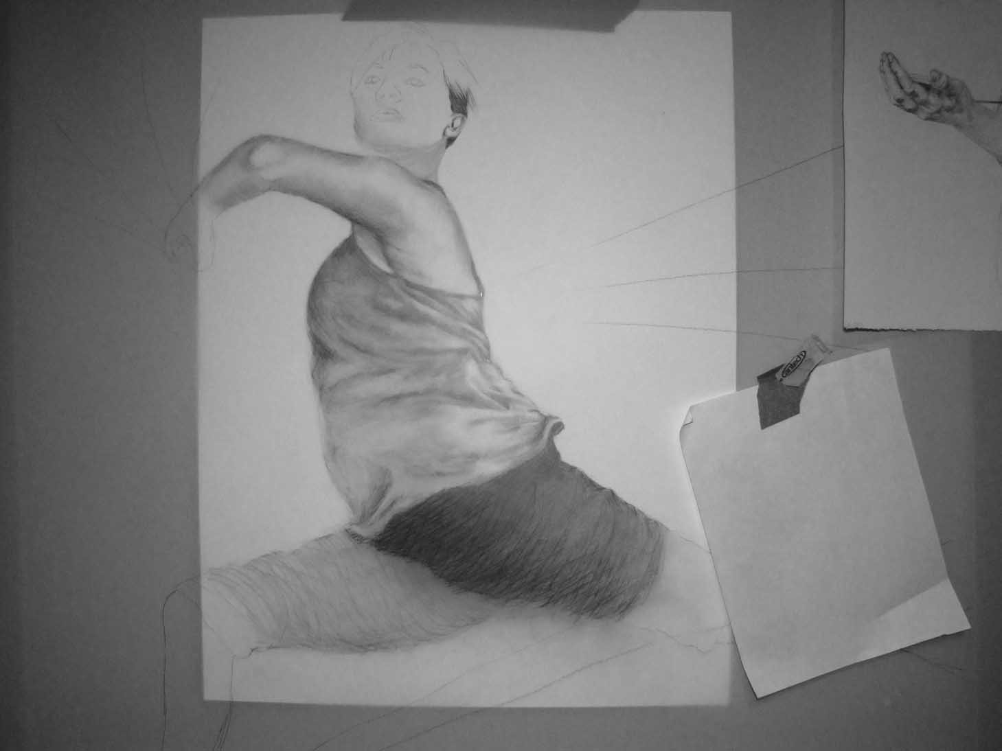 The leap Posted on June 9, 2013June 14, 2013 by mayahum Posted in Exhibition Prep, Lines and Stories (drawing series)Tagged art, creative process, Drawing, drawing film, flying, Graphite, leap, leaping, movement, Mylar, pencil marks Haha, realized leaping is the word I was looking for! (or perhaps flying ; ) ) Here I have built up the tones a bit more. Sneak peak of work in progress by Maya Hum Share this: Click to share on X (Opens in new window) X Click to share on Facebook (Opens in new window) Facebook Click to share on Pinterest (Opens in new window) Pinterest Click to share on Tumblr (Opens in new window) Tumblr Like Loading... Related