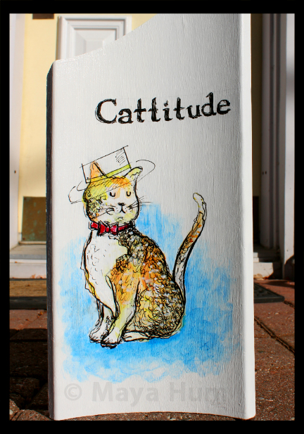 For this painting I was inspired by a great word I came across: “Cattitude.” No one can deny that cats have ATTITUDE!