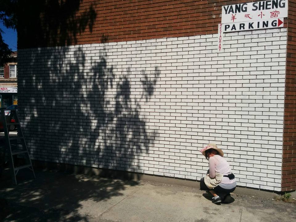 After the initial time to create the design and collection of supplies, the painting process itself took one week, full time hours. (Then it was back to full time teaching.) It was quite a work out to say the least! Thankfully it only rained a couple times and I got a lot of shouts and comments of encouragement from people passing/driving by. THANK-YOU! If you are ever in Ottawa’s Chinatown, check it out! Bronson and Somerset. 🙂