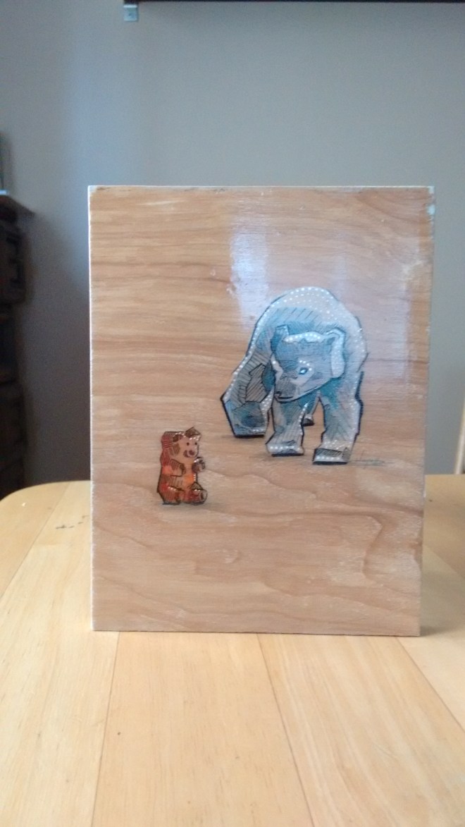 Bear meets bear continues Posted on December 1, 2015December 13, 2016 by mayahum Posted in Illustration, PaintingTagged acrylic paint, art, bear, gummi bear, Illustration, ink, Painting, Pen and Ink, polar bear, wood panel Signed and everything! Next is varnishing. inked and painted Share this: Click to share on X (Opens in new window) X Click to share on Facebook (Opens in new window) Facebook Click to share on Pinterest (Opens in new window) Pinterest Click to share on Tumblr (Opens in new window) Tumblr Like Loading... Related
