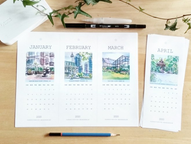 Keeping with tradition, I’ve put together a free printable calendar for the new year! Like last year I have decided to use some of my travel paintings to illustrate your calendar. They are all scenes from around where I live in Ottawa, as well as some scenes from Quebec and Toronto. It is almost year 2020!