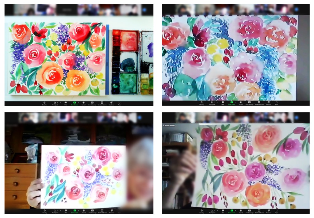 Learn to paint roses, filler flowers, berries and leaves in a loose style. Some experience with watercolour is recommended but not required. Requires a personal electronic device with internet connection. Offered live online via Zoom with the City of Ottawa. Questions can be emailed to: virtual.virtuel@ottawa.ca