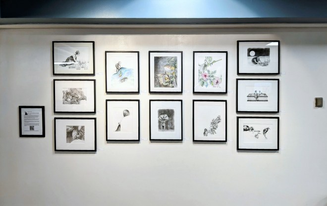I recently had the privilege of installing several of my artworks at the Linda Street Art Gallery in the Dovercourt Centre. It’s truly an honour to have been invited to showcase twelve of my personal pieces, and I must say, they look pretty good, liberated from storage and displayed in public! If you happen to find yourself near the gallery, I encourage you to take a closer look. These are my detailed mixed media drawings from my “Imagined Places” series. And for those interested, yes, they are available for purchase. I’ve lowered the prices to help them find new homes!