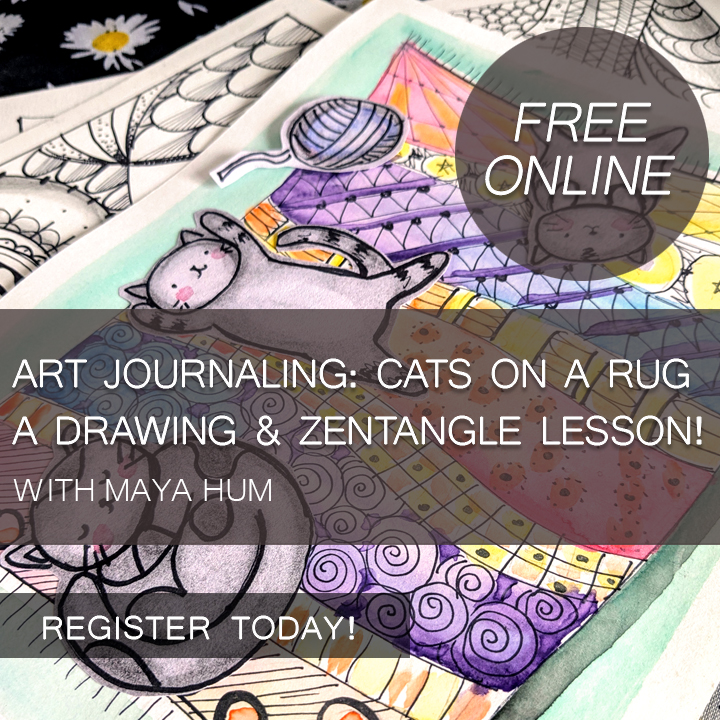 Let’s start the year with this fun (and cute) Zentangle inspired drawing lesson! NOTE: Free lessons are not recorded. Materials: 2 Pages of Paper, Ink pen, Pencil, Paper Towel, Scissors, Tape or Glue. Optional: Watercolour materials and waterproof ink pen.