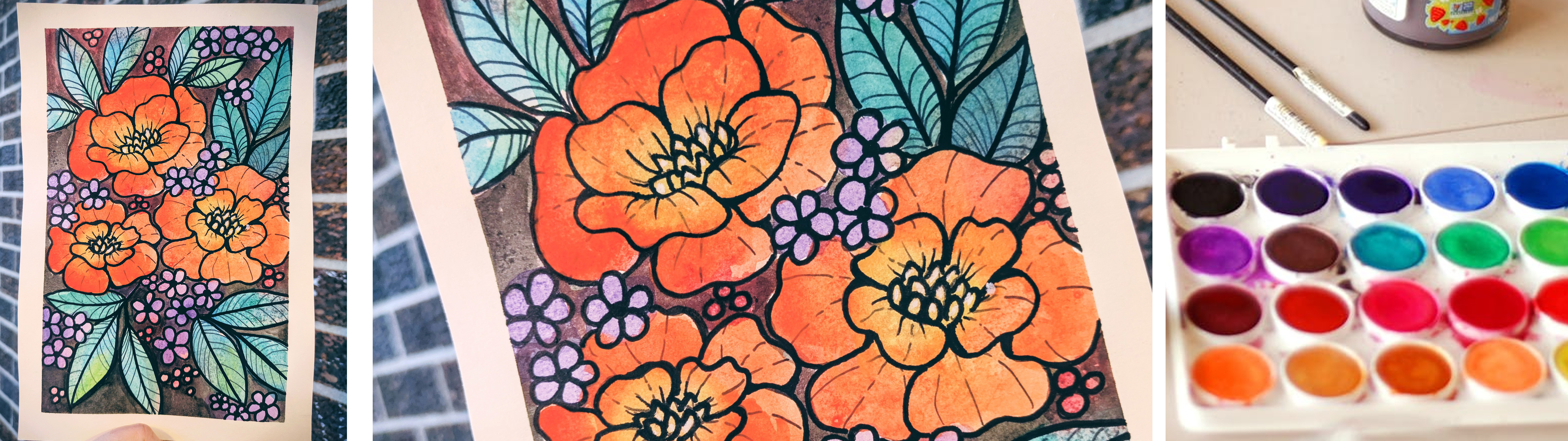 Mother’s Day Ink and Watercolour Virtual Workshop, 14+ yrs & adults